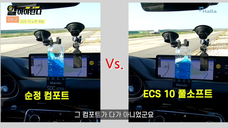 기존 차량의 전자제어 서스펜션과 어떻게 다른지 궁금하신 분들을 위한 비교 테스트도 함께 진행되었어요.