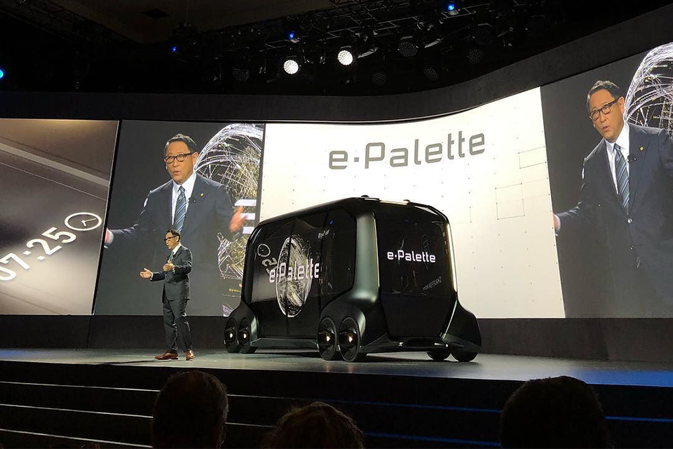 E-Transit은 셔틀/Pod/터널버스 등 다양한 형태의 신개념 지상운송 모빌리티를 일컫습니다. 자율주행으로 공유, 배달, 택시, 물류, 이동식 상점 및 업무 공간 등 다양한 모빌리티 서비스 플랫폼으로 구현되고 있는데요, 도요타의 e-Palette은 차체 길이 4~7미터의 박스 형태로 운전석이 없어 공간 활용도가 높은 게 장점입니다. 아마존, 디디추싱, 피자헛, 우버 등이 e-Palette와 손을 잡고 서비스 기획부터 상용화까지 공동 사업을 펼치고 있습니다.