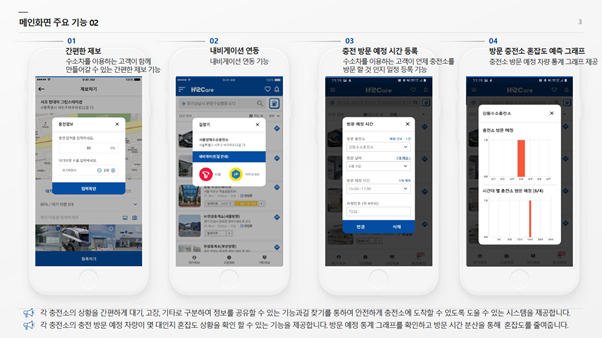 특히 하이케어(H2Care) 앱은 최근 수소 전기차에 대한 적극적인 정부 지원과 친환경 활동의 확산에 힘입어 빠르게 늘어나고 있는 수소차 사용과 관련하여, 충전소 부족 및 충전소의 잦은 고장으로 인한 사용자들의 고충을 가장 적극적으로 해결하고 있는 서비스로 인정 받고 있다. 2021년 2월말 기준 국내 수소 차량 등록 대수인 11,557대 대비 가입율이 약 90%에 이를 정도로 수소전기차 운전자들에게 필수 앱으로 자리잡아 가고 있다.