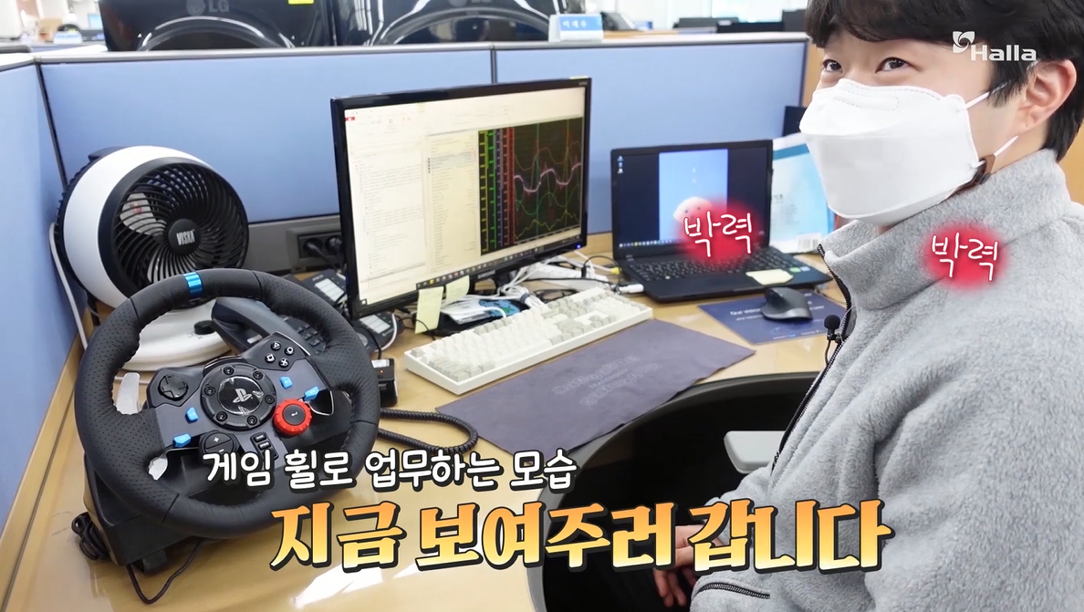 시뮬레이터 실에서 SbW를 활용한 테스트를 마치고 돌아온 이재우 연구원. 그런데, 이재우 연구원 자리에서 한 가지 독특한 물품이 발견되었습니다. 다름 아닌 ‘게임 휠’이었는데요. 마치 장난감 핸들같이 생기기도 한 이 휠이 이재우 연구원 자리에서 발견된 그 이유는 무엇일까요?