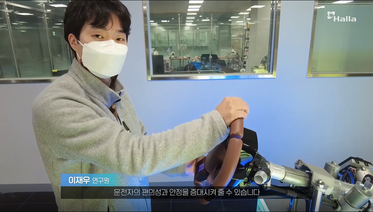 운전석에 앉은 김만호 책임연구원이 주행 중 핸들을 놓았지만 정상적으로 차가 주행하는 모습은 실로 놀라웠는데요. 정상 주행이 가능했던 이유는 바로 보조석에 앉은 이재우 연구원이 게임 휠로 차를 운전하고 있었기 때문이었답니다. 재미있게만 느껴졌던 게임 휠, SbW 구현을 위해서는 필수였네요!