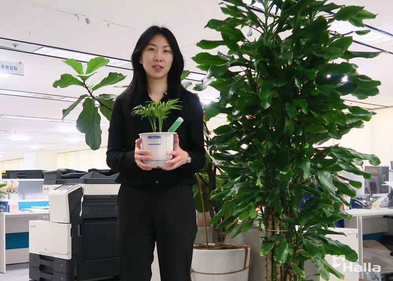 반려나무를 들여오는 데 사용된 기금은 가을숲 조성에도 쓰일 예정이고요. 오늘은 한라그룹 SNS에서 반려나무를 잘 키운 직원을 만났습니다.