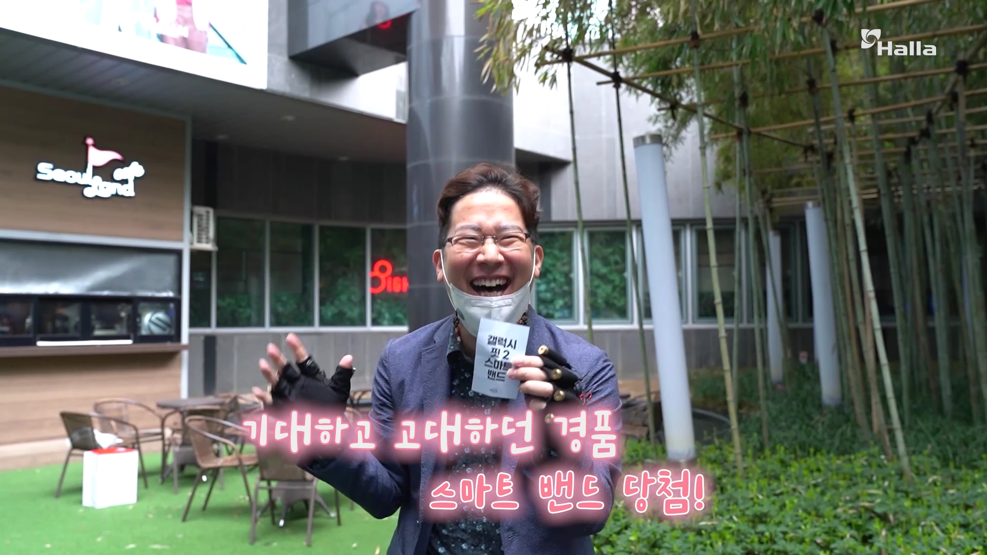 한라미션캠에 빅웃음을 선사한 이현수 책임은 원픽이었던 스마트 밴드 경품 당첨! 레이저 장갑 + 스마트 워치로 가산 최강 IT 인싸로 등극했답니다.