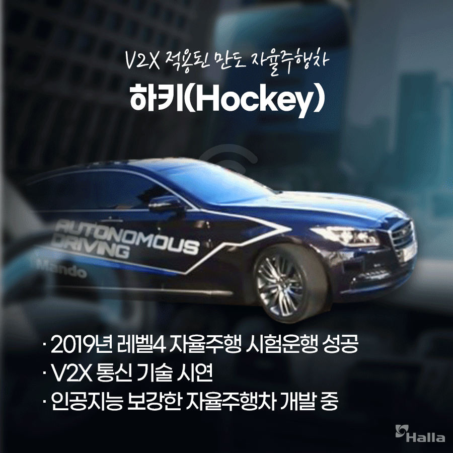 이처럼 V2X는 자율주행 시대의 필수 인프라로서 가까운 미래에 적용될 것으로 기대됩니다. V2X가 적용된 레벨4 자율주행차, 만도의 ‘하키’와 같은 기술도 곧 도로에서 만나볼 수 있지 않을까요?첨단 자율주행 기술 개발로 미래차 산업을 선도하는 만도에 많은 관심 부탁드립니다!