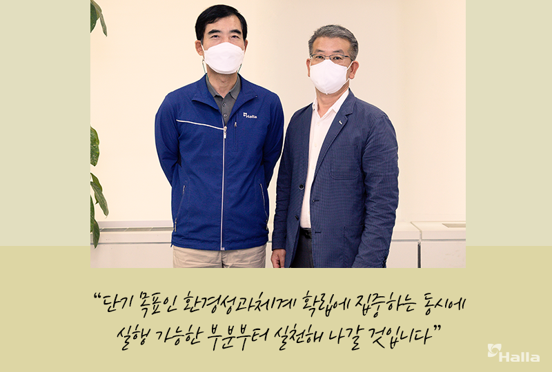 ㈜한라는 지난 5월 1일 날짜로 CEO 직속 ESG실을 출범시키며, 본격적인 ESG 지속가능경영 추진을 위한 준비작업을 진행해 왔습니다. ESG실 이민재 전무와 녹색경영팀 최돈거 팀장을 만나 고민의 지점과 앞으로의 계획을 들어 봅니다.