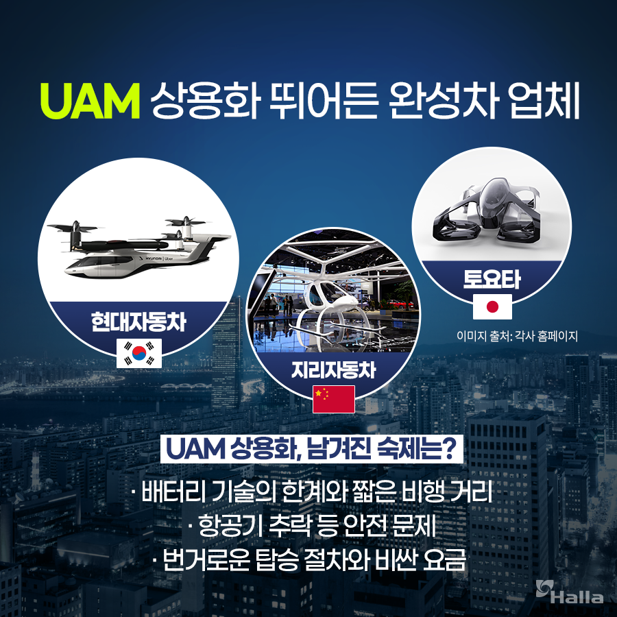 그렇다면, 완성차 업체는 어떻게 대처하고 있을까요? 대부분 자연스럽게 UAM 시장으로 발을 넓히고 있습니다.