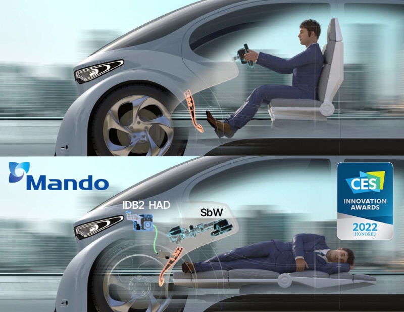 EV∙자율주행 솔루션 전문기업 ㈜만도가 ‘CES 2022’에서 혁신상을 수상했습니다. 지난해 이어 두 번째 ‘VIT(Vehicle Intelligence & Transportation)’ 부문 혁신상을 수상한 만도의 이번 출품작은 최첨단 통합전자브레이크 시스템(IDB2 HAD : Integrated Dynamic Brake for Highly Autonomous Driving, 이하 IDB2)입니다.