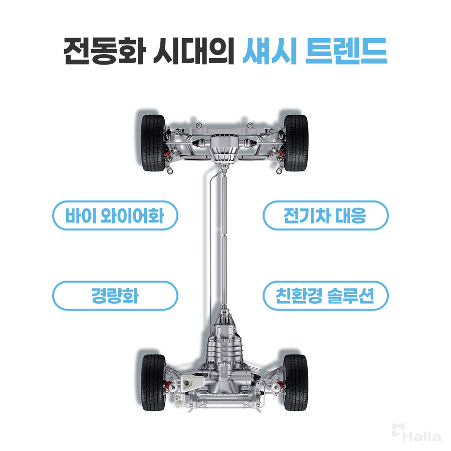최근 섀시는 변혁의 시기를 맞았습니다. 기존의 내연기관 차량 대신 하이브리드, 전기차 등이 대세가 되면서 섀시 역시 전동화의 주역이 된 것이죠.