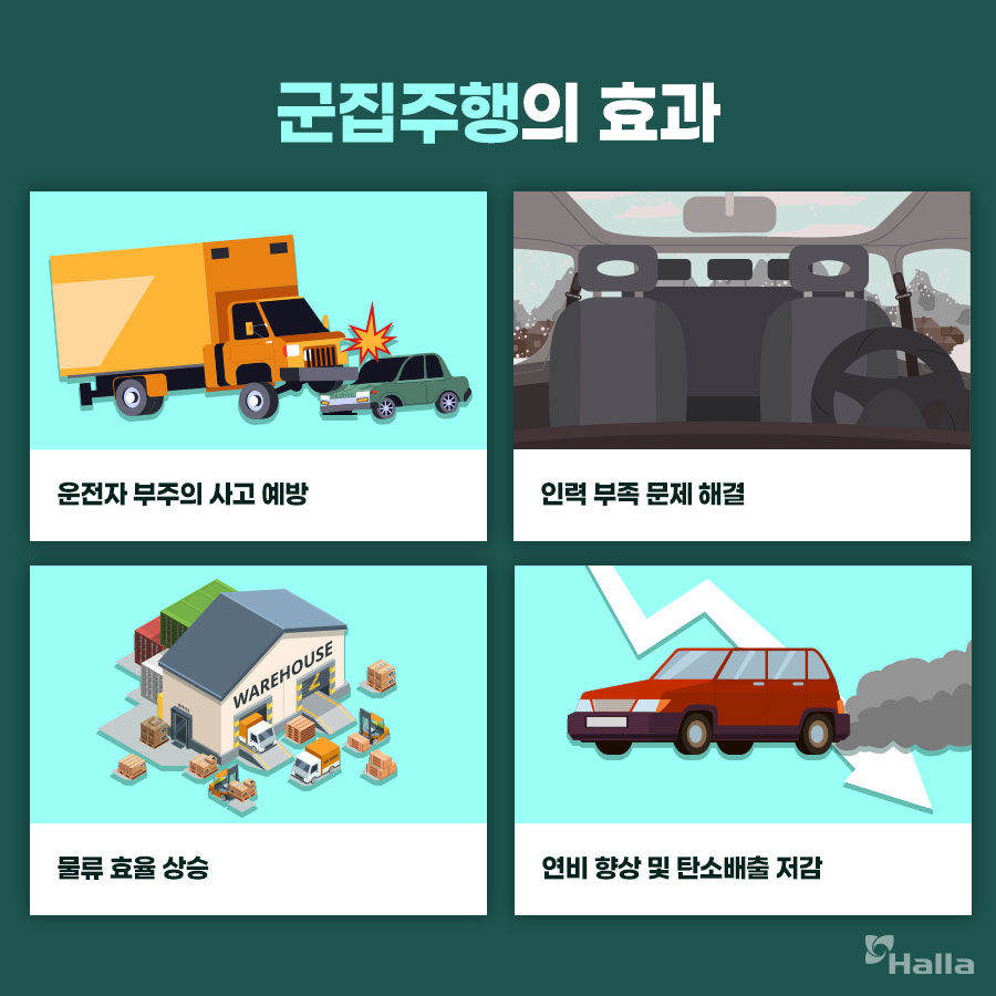인력 측면에서도 선두 차량의 운전자 1명만 필요하므로 물류업계의 인력난 해소가 가능합니다.