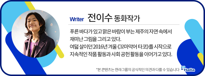 더 나은 환경, 지속가능한 미래를 위한 ‘이수의 생각’이 시작됩니다. 동화작가 전이수 군이 꿈꾸는 내일의 모습을 한라그룹이 소개합니다.