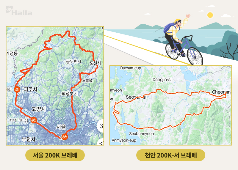 *란도너스(Korea Randonneurs): 200km 이상의 장거리를 외부 도움없이 자신의 힘만으로 달리는 비경쟁 사이클 대회
