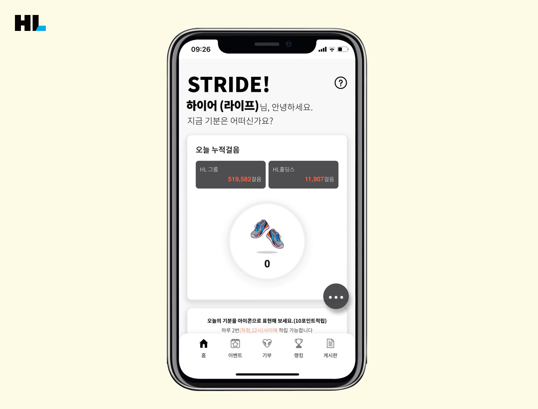 HL 스트라이더는 ESG에 대한 임직원의 관심과 이해를 제고하기 위한 취지로 개발되었습니다. 지난 7월, 임직원 50여 명을 대상으로 약 3주간의 베타 테스트를 거쳐 이달 10월 17일 정식 출시되었는데요. HL 임직원이라면 누구나 HL 스트라이더 앱을 통해 HL이 추진하고 있는 사회공헌 활동을 손쉽게 확인하고 참여할 수 있습니다.