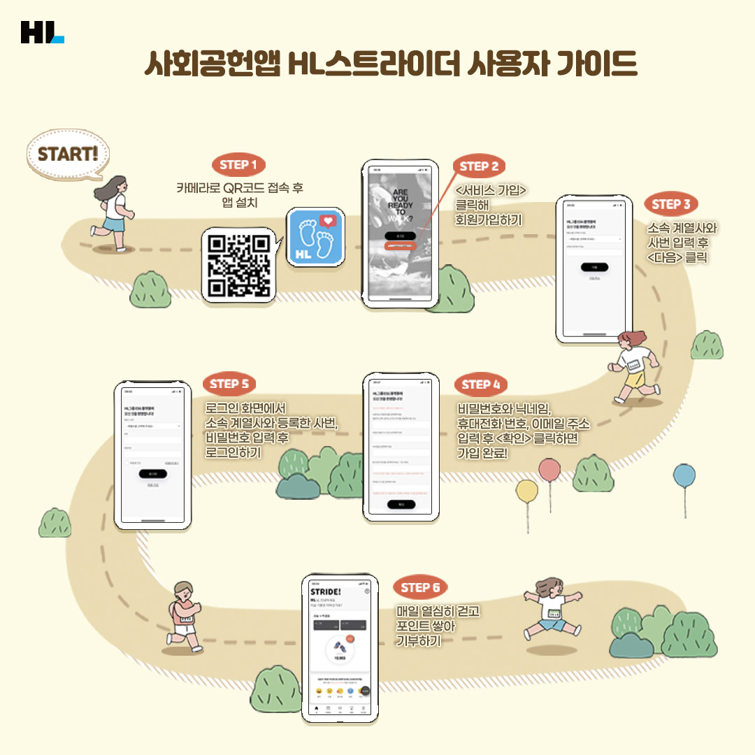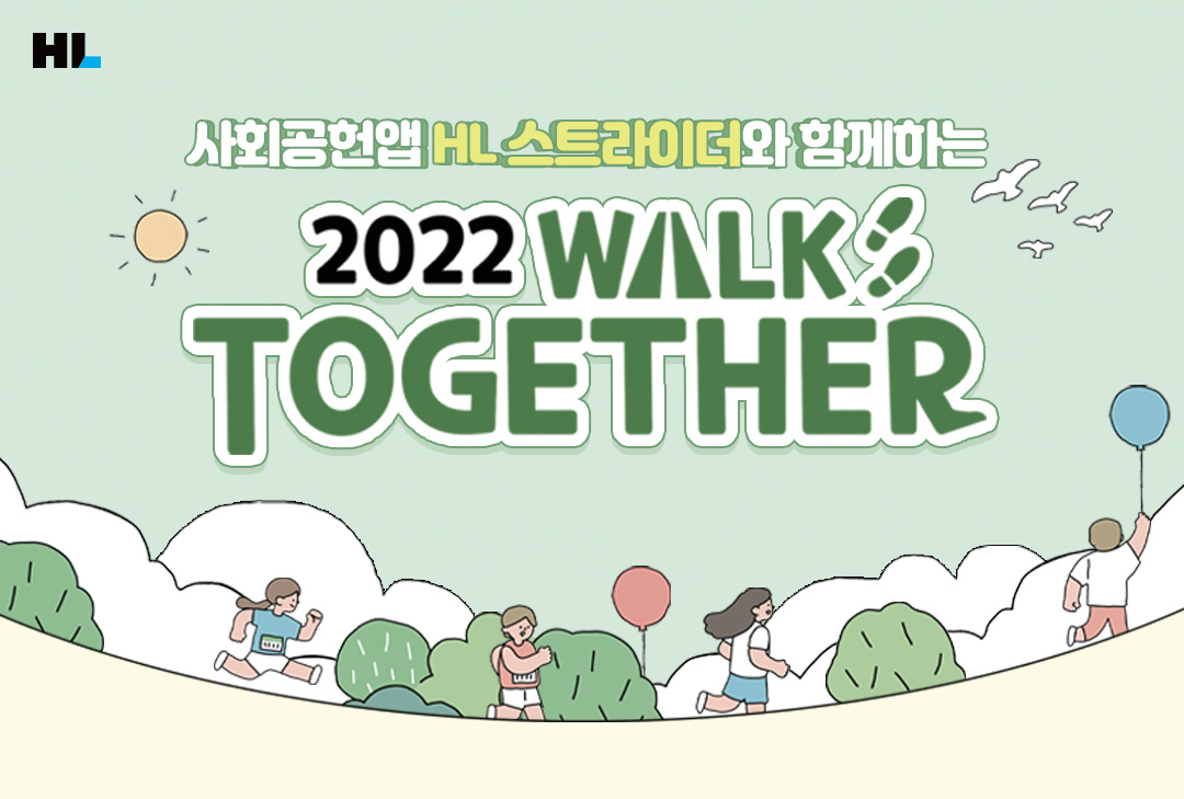 HL은 HL 임직원을 대상으로 한 사회공헌 앱 HL 스트라이더를 신규 런칭한 한편, 해당 애플리케이션을 통해 ‘2022 Walk Together’ 캠페인을 진행하고 있습니다.