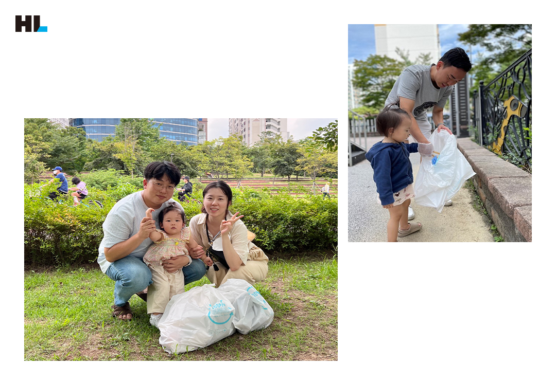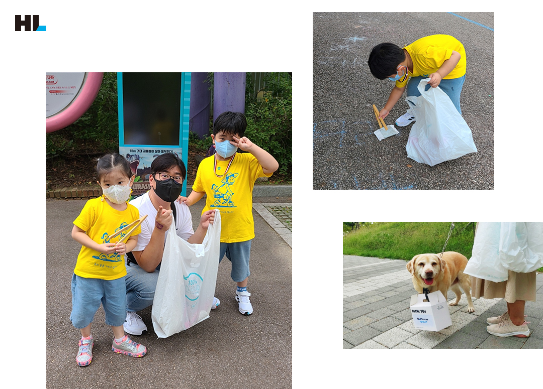 이번 HL클레무브 행사의 가장 큰 특징은 장소와 시간 선택이 자유로워 언제 어디서나 직원들이 플로깅에 참가할 수 있다는 점입니다. 가족 단위 참여가 눈에 띄게 많은 이유도 여기에 있을 듯한데요. 온 가족이 함께 뜻깊은 시간을 보내고, 게다가 아이들 교육 효과까지! 클레무브는 다 계획이 있었군요.