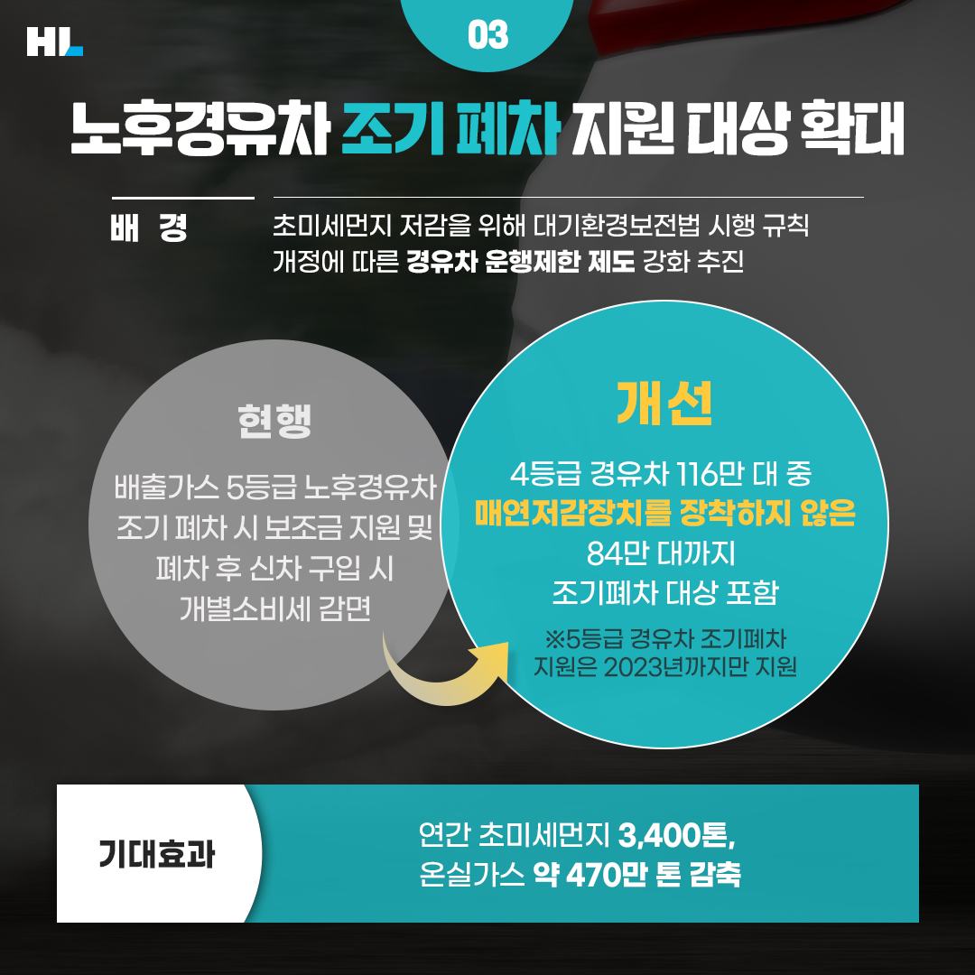 3. 대기 중 미세먼지 저감을 위한 경유차 폐차 지원 제도 확대