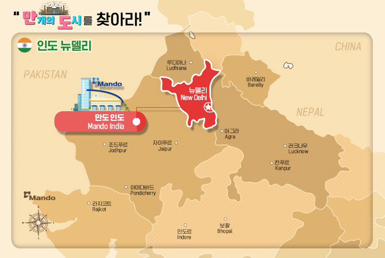 유구한 역사를 간직한 채 높은 종교・문화 유산으로 관광객을 사로잡는 델리는 이제 세계 자동차 시장에서도 만도와 함께 모빌리티의 미래를 열어가며 세계인의 눈길을 끌고 있습니다. 인도 델리의 성장하는 내일이 기대됩니다.