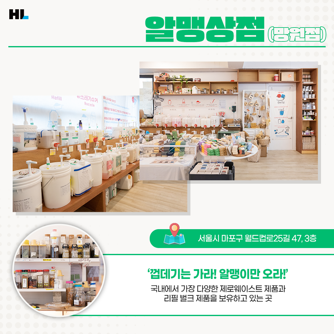 HL과 함께 떠나는 친환경 플레이스 투어가 시작됩니다! ‘환경맛집’ 시리즈에서는 우리가 모르고 지나쳤던, 지구 환경을 위해 노력하는 스페셜 플레이스를 소개할 예정입니다. 오늘은 그 첫 번째 코너로 쓰레기는 줄이고, 일상은 지키는 녹색 라이프스타일을 제안하는 제로웨이스트 샵 3곳으로 떠나봅니다.