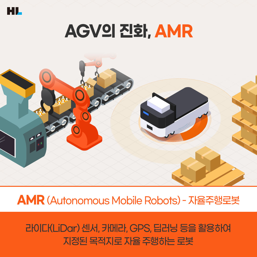 코로나19 이후 눈에 띄게 확대되고 성장한 분야 중 하나, 바로 물류 시장입니다. 이커머스 주문물량이 폭발적으로 증가하면서 물류 현장에는 노동력 부족 현상이 나타났고, 전 세계 물류센터들은 앞다퉈 자동화 설비 확충에 열을 올리고 있습니다. 그중에서 유독 눈에 띄는 모빌리티가 있습니다. 보다 효율적이고 정확한 물류 처리를 가능하게 하는 ‘OOO’는 이제 모든 물류 현장에서 선택이 아닌 필수라고 하는데요. 근로자들의 수고를 덜어주고 안전을 지켜줄 무인자동운반차 ‘AGV(Automated Guided Vehicles)와 AMR(Autonomous Mobile Robots)’를 소개합니다.