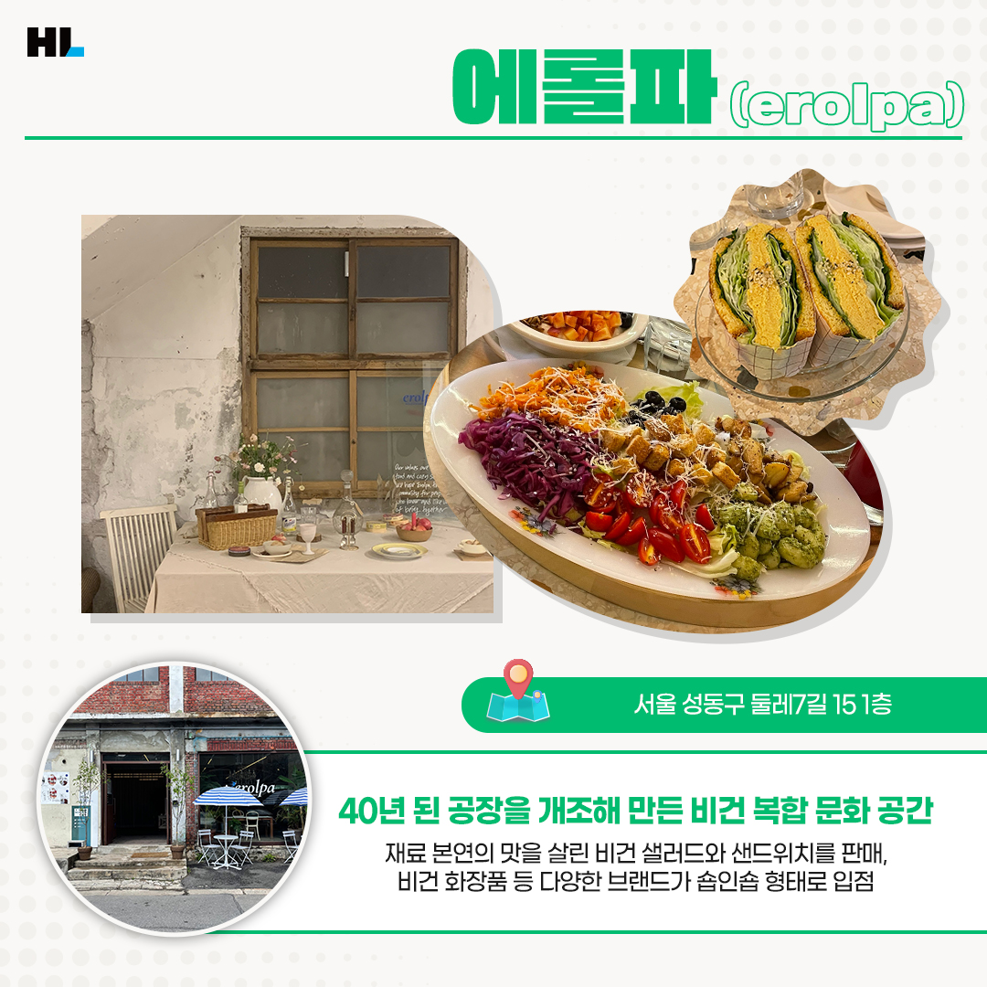 HL과 함께 떠나는 친환경 플레이스 투어! ‘환경맛집’ 시리즈에서는 우리가 모르고 지나쳤던, 지구 환경을 위해 노력하는 스페셜 플레이스를 소개합니다. 오늘의 ‘환경맛집’ 주제는 비건 레
