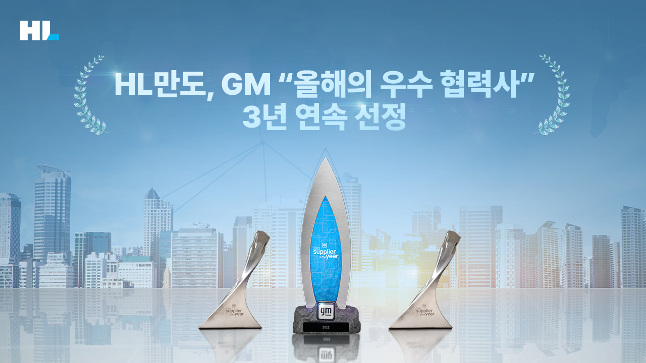HL그룹 EV∙자율주행 솔루션 전문기업 HL만도㈜가 미국 제너럴모터스(GM) ‘2022 올해의 우수 협력사’에 선정됐다. 2020년 ‘런치 엑설런스 어워드(Launch Excellence Award)’ 수상 이래 3년 연속이다.