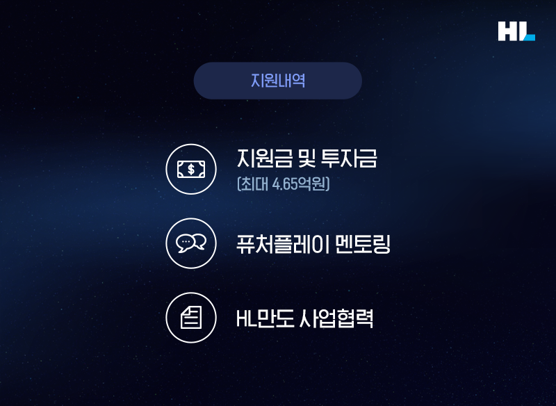 프로그램 참가 팀은 HL만도와의 사업/기술협력 등의 기회와 수료 후에도 지속적인 지원과 관리를 받을 수 있습니다.