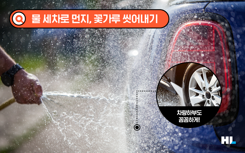 차량 내부의 점검을 마쳤다면 이제는 차량 외부 차례입니다. 미세먼지와 송홧가루, 꽃가루 등을 처리하는 것이 봄철 차량관리의 중요한 포인트입니다. 차가 각종 먼지로 더러워졌다고 해서 매번 전문 세차장에 세차를 맡기기에는 비용이 부담스러운 것이 사실인데요. 이럴 땐 차량에 각종 오염물질이 늘어붙지 않도록 물세차를 자주 해 주며 관리해주는 것이 좋습니다. 흠집이 생기지 않도록 부드러운 천 등으로 차량을 살짝 닦아낸 뒤 물로 씻어내 관리해주세요.