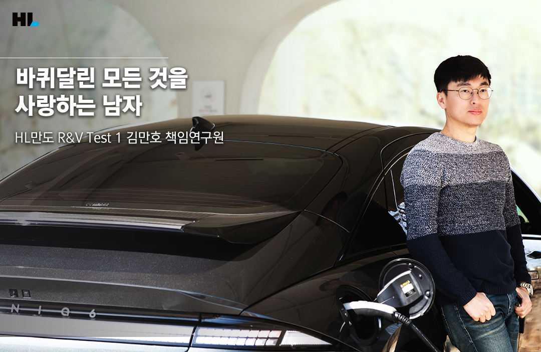 HL 만도 Steering BU R&V실 R&V Test1팀 김만호 책임입니다. 저희 R&V Test1팀에서는 조향 시스템의 성능 개발 및 NVH* 시험을 주로 담당하고 있는데요. 저는 실차 조건에서 조향 시스템의 시험 평가 및 개발(튜닝) 업무와 함께 SbW(Steer by Wire) 시스템의 성능 개발을 담당하고 있습니다.