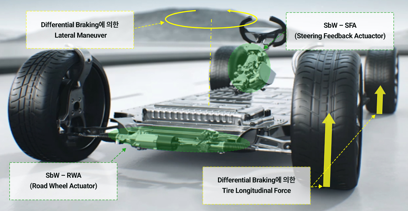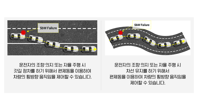 - 스티어링 시스템 고장 시 브레이크 시스템을 통해서 조향력(Steerability)을 지속적으로 제공할 수 있습니다.