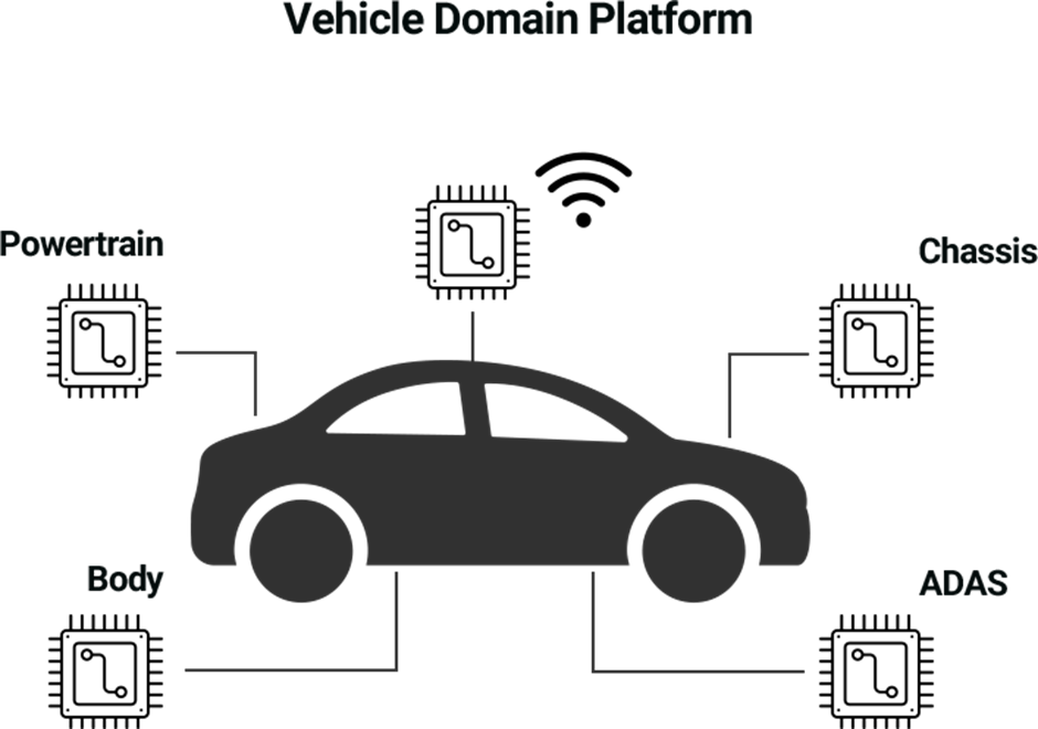 중앙 집중형 전기/전자 구조 기반에서는 중앙에 있는 별도의 Domain Control Unit에 MiCOSA솔루션이 적용되며 차량이나 제어기의 하드웨어에 의존하지 않고 적응성(Adaptability), 모듈성(Modularity), 유연성(Flexibility), 확장성(Scalability)을 갖습니다.