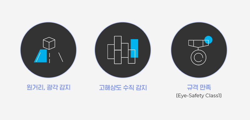 기존 상용 라이다 대비 10배 이상의 수직 해상도 확보로 고해상도 Point Cloud 정보 기반 물체를 정확하게 식별 할 수 있게 합니다.