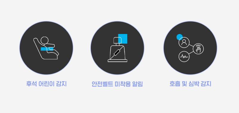 또한 차량 실내 카메라를 통해 승객의 탑승을 인식하고, 안전벨트 미착용 알림, 열선 시트 및 공조기 제어 등 다양한 편의 기능을 제공할 수 있습니다.