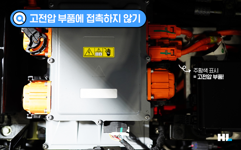 만약 침수가 발생했다면 즉시 시동을 끄고 빠르게 차량 내부에서 벗어나 대피해야 합니다. 이후 배수가 된 차량을 수습할 때에도 커넥터와 주황색으로 표시된 고전압 부품(케이블 등), 배터리에 직접 접촉하지 않도록 조심해야 합니다. 직접 차량을 수습하고 처리하기보다는 소방서나 보험사, 차량 서비스센터에 연락해 전문가의 도움을 받는 것이 안전합니다. 장마 시작 전에 피복 손상 등 감전 우려가 있는 부분에 대하여 점검을 진행하는 것도 좋은 방법이겠죠?