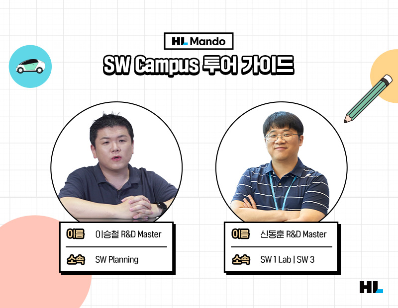 앞으로 자동차 소프트웨어는 어떤 방향으로 나아가게 될까요? 그리고 그 중심에서 HL만도의 SW캠퍼스는 어떤 역할을 하게 될까요? 무한한 가능성과 혁신에 도전하는 HL만도의 미래에 많은 관심과 응원 부탁드립니다.