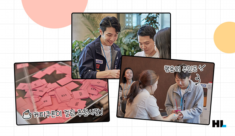 소중한 점심시간을 내어 준 구성원들을 위한 행운권 추첨 시간도 있었는데요. 당첨자는 광고에 출연한 세 연구원이 직접 뽑았습니다. 번호가 하나씩 호명될 때마다 환호와 아쉬움을 담은 탄식이 섞여 나오는 유쾌한 분위기 속에서 총 15명의 당첨자가 커피쿠폰 3만원을 차지했습니다.