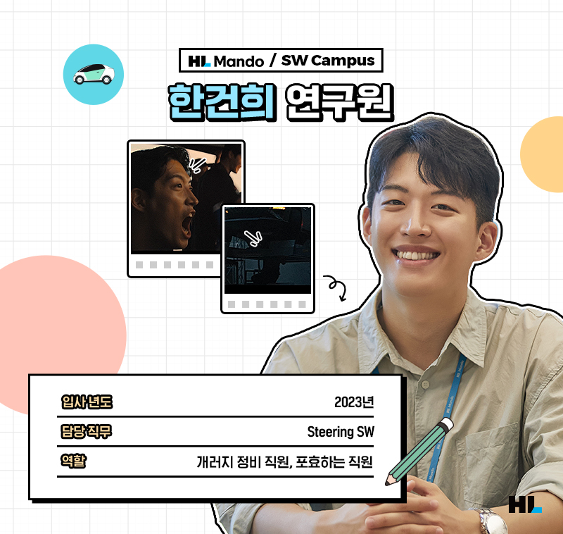 건희(한): 저는 광고 한 편을 만드는 데 이렇게 많은 업체들이 참여하다는 걸 처음 알았어요. 그냥 막연히 ‘광고 회사’가 광고를 만드는 줄 알았는데, 모델 에이전시, 프로덕션, 기획사 등등 엄청나게 많은 회사들의 협업이 필요하더라고요. 저희가 HW, SW를 비롯한 많은 팀들이 협업하는 것처럼 광고에도 작품 하나에 숨은 노력들이 많다는 걸 느꼈습니다. 그리고 제가 HL만도의 구성원으로서 짧게나마 회사의 광고에 담겼다는 점이 너무 기쁩니다. 항상 부족하다고 생각하고 아직 열심히 배우고 있는 신입사원이었는데, 좋은 추억이 되었습니다.