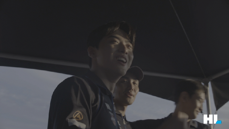 건희(한): 안녕하세요. 저는 가장 앞에서 환호는 직원으로 출연한 한건희입니다. 개러지에서 차 아래에 들어가 차량을 정비하는 모습으로도 출연했습니다.