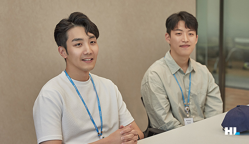건희(한): 저는 촬영이 일주일 정도 남은 시점에서 연락을 받았어요. 저도 누군가의 추천이 있었다고 하는데, 어떤 분이 추천하셨는지는 저도 미스터리입니다(웃음). 저도 재민 연구원님처럼 신규 입사자이기 때문에 젊고 신선한 에너지를 좋게 봐주신 거 아닐까요?