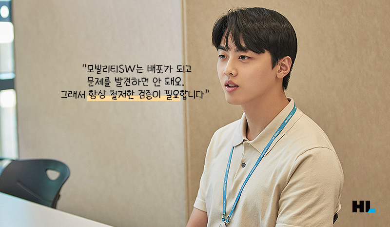 건희(김): 저도 같은 생각이에요. 오래 전부터 HL만도는 ‘Do and do’를 실천하고 있는 회사라고 생각해요. 저희 팀은 실제 차량에 탑재될 소프트웨어에 대한 검증 업무를 진행하고 있는데, 모빌리티 소프트웨어는 생명과 직결될 수 있기 때문에 소프트웨어가 배포된 후에 문제가 발견되면 안 되거든요. 그래서 엄청 까다롭고 철저하게 검증 과정을 거치는데, 이걸 주어진 시간 안에 해 내야 한다는 게 무척 어렵거든요. 그럼에도 불구하고 팀원들이 서로 협력하면서 주어진 일정 안에서 업무를 마치는 것을 보면 ‘Do and do’가 딱 맞지 않나 생각합니다.