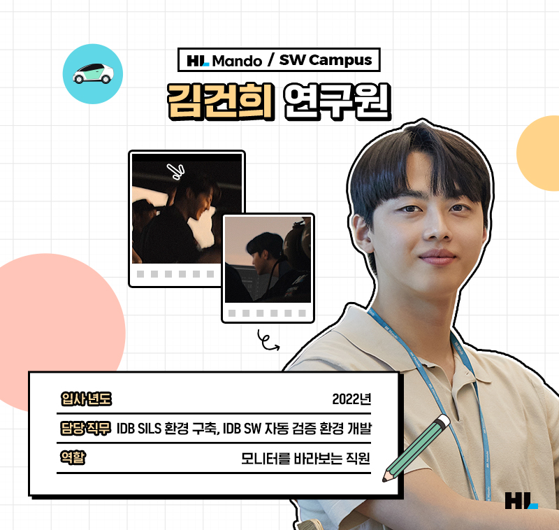 건희(한): 저는 광고 한 편을 만드는 데 이렇게 많은 업체들이 참여하다는 걸 처음 알았어요. 그냥 막연히 ‘광고 회사’가 광고를 만드는 줄 알았는데, 모델 에이전시, 프로덕션, 기획사 등등 엄청나게 많은 회사들의 협업이 필요하더라고요. 저희가 HW, SW를 비롯한 많은 팀들이 협업하는 것처럼 광고에도 작품 하나에 숨은 노력들이 많다는 걸 느꼈습니다. 그리고 제가 HL만도의 구성원으로서 짧게나마 회사의 광고에 담겼다는 점이 너무 기쁩니다. 항상 부족하다고 생각하고 아직 열심히 배우고 있는 신입사원이었는데, 좋은 추억이 되었습니다.