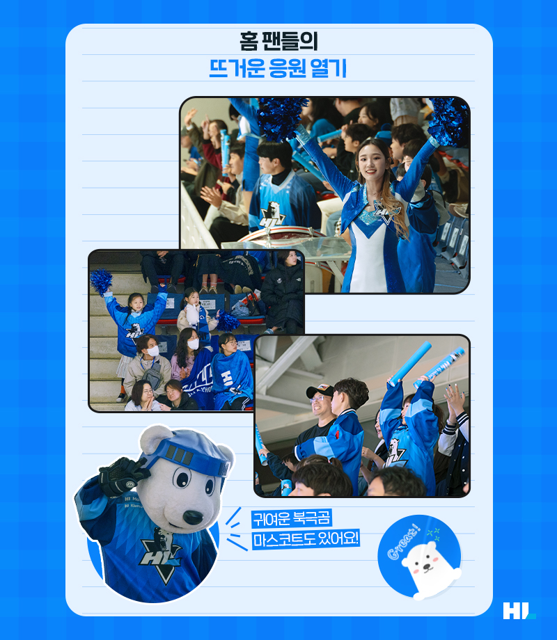 다음 홈 경기는 오는 10월 28일과 29일, 주말 2연전으로 예정되어 있으니 주말 나들이를 계획해보는 건 어떨까요? 또 한 번의 통합우승을 향해 겨우내 빙판을 내달릴 HL안양 선수들을 향해 많은 관심과 성원 부탁드려요!