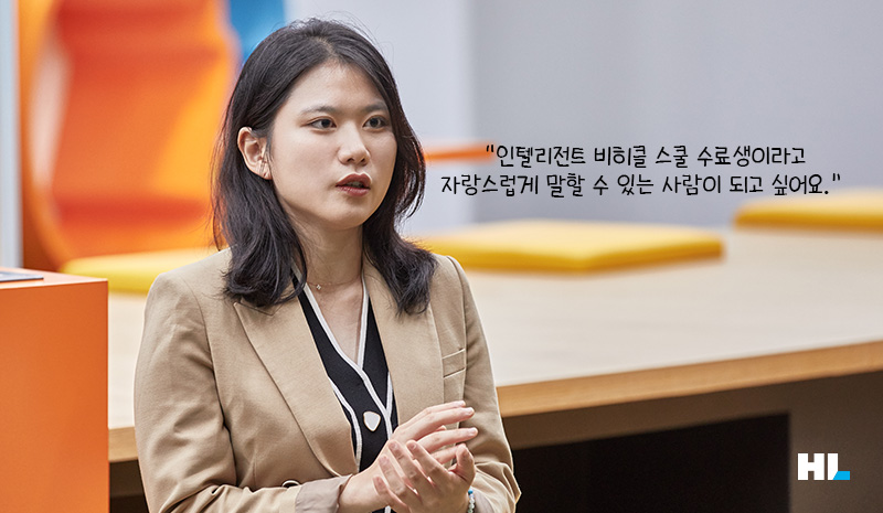유정: 6개월간의 과정이 끝나면 “제가 이 교육을 수료했어요”라고 자랑스럽게 말할 수 있고, 또 주변에 인텔리전트 비히클 스쿨 수강을 적극적으로 권할 수 있는 사람이 되고 싶어요. 또 제가 배운 것들을 가지고 필드에 나가서 ‘잘 한다’, ‘잘 배웠다’라는 평가를 받고 싶습니다.