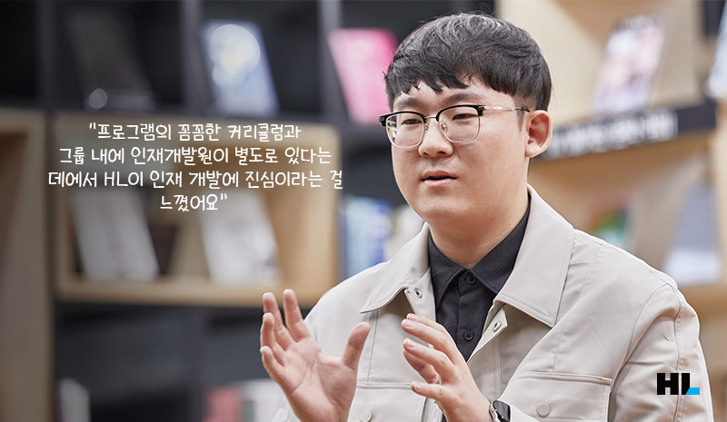 동현: 저는 실무에서 활용할 수 있는 경험과 지식을 얻고 싶어요. 요즘 부트캠프 같은 프로그램이 많은데, 그 중에서도 인텔리전트 비히클 스쿨을 선택한 이유는 커리큘럼이 구체적으로 짜여 있다는 점이었거든요. 선발 과정에서도 단순히 서류와 면접에 그치지 않고 SW역량검사를 거치니까 정말 체계적이라 생각했고, 내가 정말 현업에 뛰어들어서 사용할 수 있는 지식을 배울 수 있을 것이란 기대가 생겼어요. 또 HL그룹 내에 인재개발원이 별도로 있다는 점에서 HL이 정말 인재 양성에 진심이라는 걸 느껴서 더 기대가 됩니다.