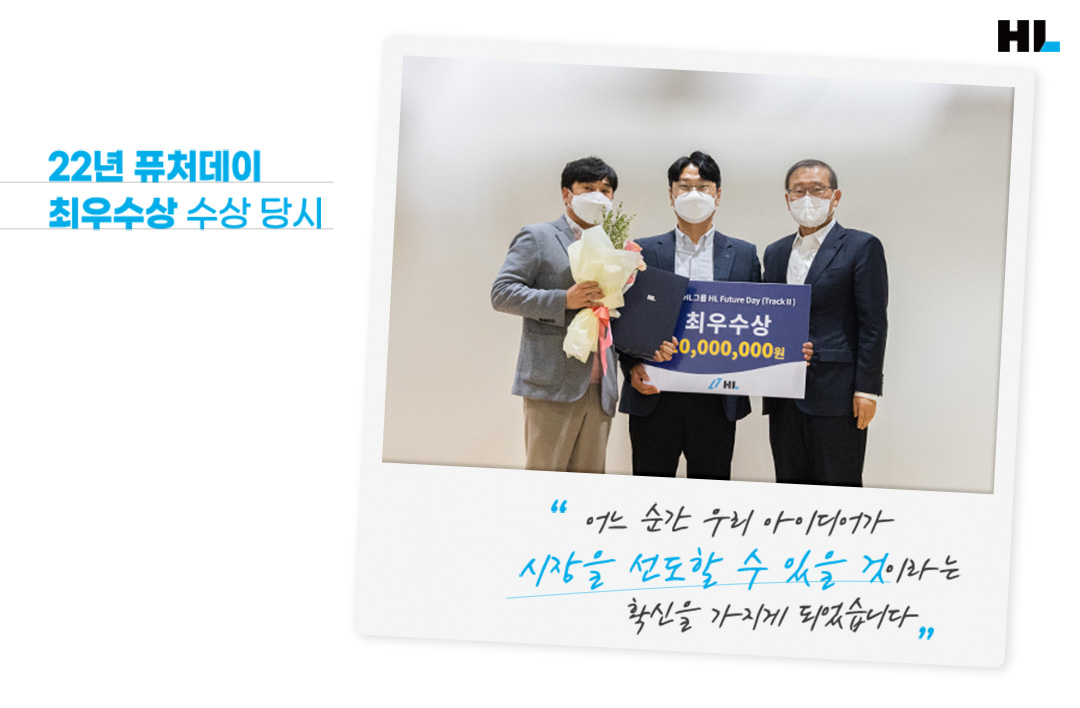 이러한 노력들이 신사업의 기반을 다지고 회사의 지원, 유연한 기업문화 제도, 직원들의 노력이 합쳐져 통해 발전한 비즈니스라 더욱 의미 있습니다. HL홀딩스는 직원들의 아이디어가 실현될 수 있도록 적극적인 지원을 아끼지 않고 있습니다.