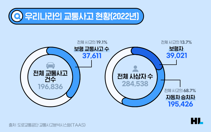 지금까지 교통사고로부터 사람을 보호하기 위한 여러 노력들을 살펴보았는데요. 가장 좋은 것은 바로 사고 자체가 일어나지 않는 것이겠죠. 모두의 안전을 위해 마련한 법규와 제도를 잘 지키고, 항상 주변을 살피며 조심한다면 사고의 위험을 줄일 수 있습니다. 보행자와 운전자가 서로 배려하고 조심해, 사고 없이 행복하고 안전한 도로가 되었으면 좋겠습니다.