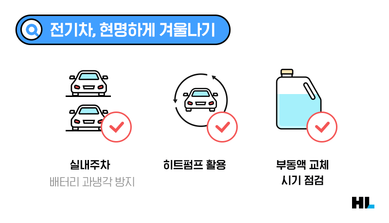 지금까지 전기차의 겨울나기에 대해 알아보았습니다. 사람도 배터리도 추위에 움직임이 둔해지는 겨울, 꼼꼼히 준비해 따뜻하고 안전한 나날을 보내세요!
