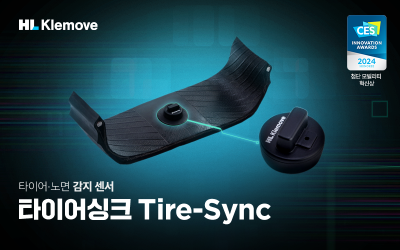 또 하나의 혁신상 제품은 ‘타이어싱크(Tire-Sync)'입니다. 타이어∙노면 감지 센서인 타이어싱크는 첨단 모빌리티(Vehicle Tech & Advanced Mobility) 분야에서 혁신상을 수상했습니다. 타이어 내부에 장착해 타이어의 마모도∙온도, 차체 하중과 노면 상태(결빙, 우천, 포트홀, 블랙아이스 등)를 제동, 조향, 현가 시스템에 전달하여 사고 예방은 물론 주행 성능도 향상시킬 수 있는데요. 기존 타이어 공기압 경보장치(TPMS: Tire Pressure Monitoring System)를 대체할 혁신적 제품으로 현재 글로벌 타이어 업체와 공동 개발 중에 있으며, 장착 시 기존 타이어의 성능에 영향을 끼치지 않도록 1.7㎝의 작은 크기와 8.5g의 가벼운 무게로 설계된 것이 특징입니다.