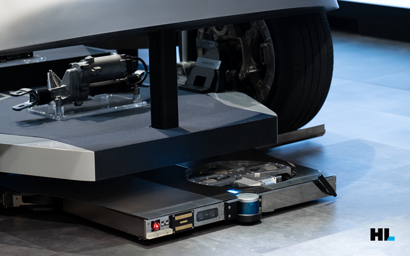 오픈 스테이지로 준비한 HL그룹의 전시 부스에서는 HL만도의 차세대 전동화 제품 EMB, IDB, 모션엑스라이트(E-Corner Module)을 탑재한 모듈카와 함께 폭 10m, 높이 4.5m의 대형 LED 스크린이 관람객의 시선을 사로잡는데요. 스크린에서는 HL만도와 HL클레무브가 그리는 미래를 담아낸 영상이 상영됩니다. 영상 속 주인공의 일상에 맞춰 주차로봇 파키가 전시된 모듈카를 옮기는 자율주행 발렛 주차 시연을 진행해 관람객들에게 새로운 재미를 선사합니다.