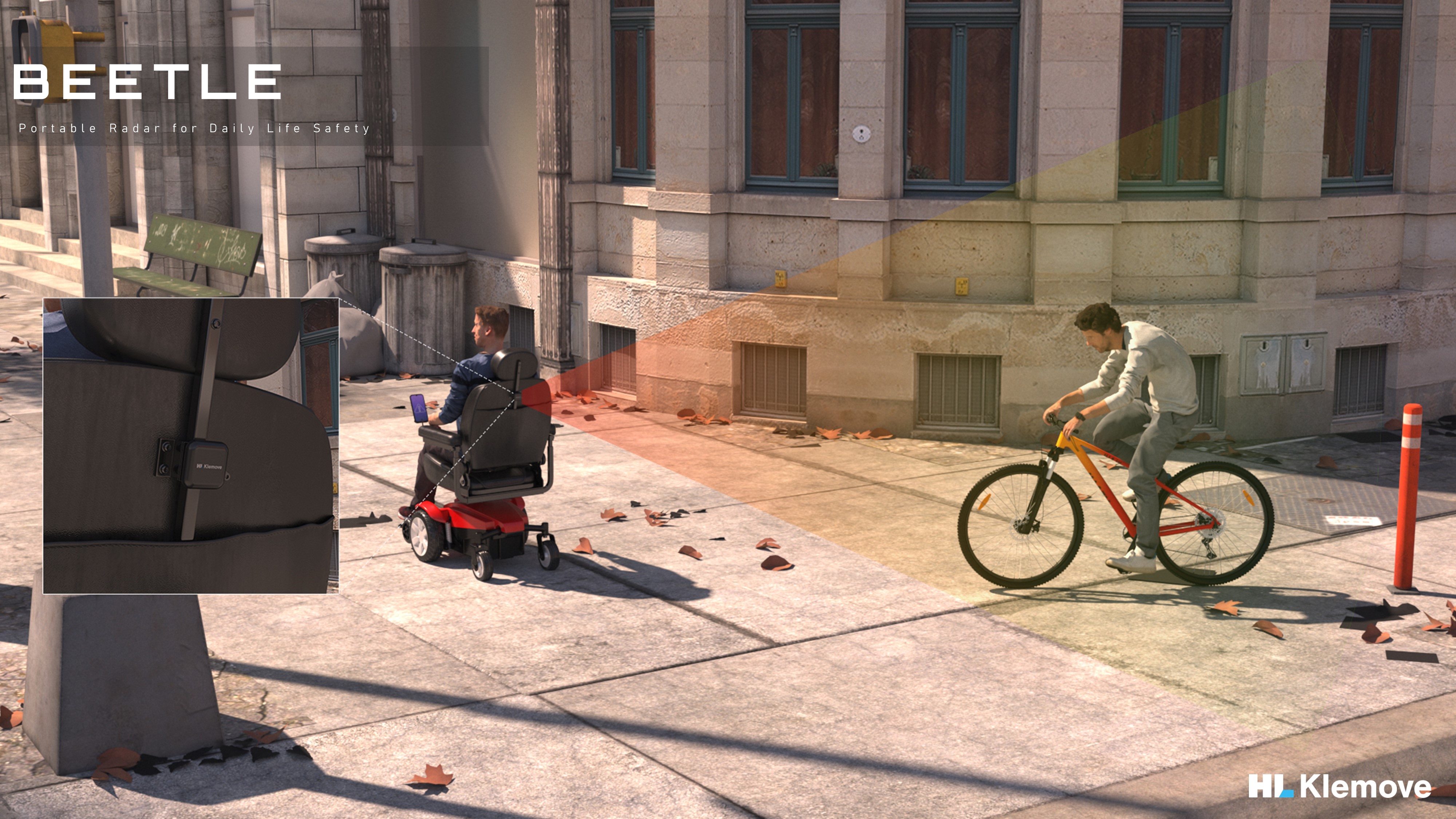 CES 2024 혁신상을 수상한 휴대용 레이더 비틀은 일상 속 안전을 위한 제품입니다. 이동 시 사각지대에 존재하는 잠재적인 위험을 감지하여 사용자에게 알림을 보냄으로써 누구나 안전하게 이동할 수 있도록 도울 수 있습니다. 특히 비틀을 통해 전동휠체어 이용자나 노인, 어린이 등 이동약자들의 안전 확보 효과를 거둘 수 있을 것으로 기대하고 있습니다.