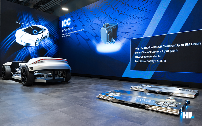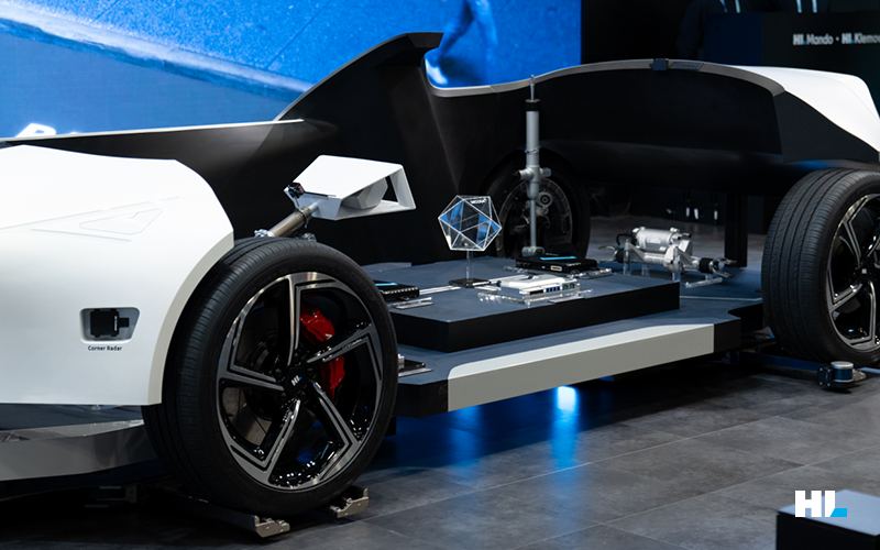 시연이 이뤄지는 메인 스테이지 옆에는 HL만도와 HL클레무브의 전시 공간이 꾸려져 있습니다. 전시 패널에서는 CES 2024에서 혁신상을 수상한 제품의 실물은 물론 터치 패널과 스크린을 통해 전시 제품에 대해 더 깊게 이해할 수 있도록 했습니다.