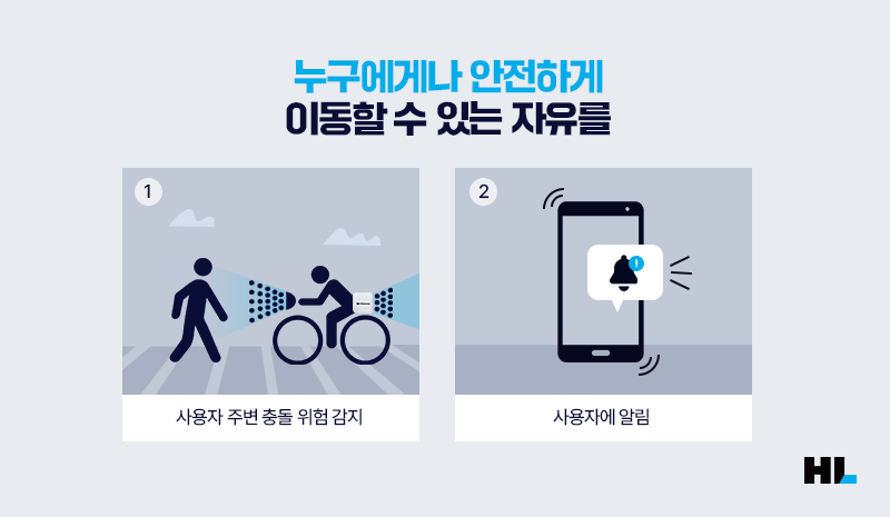 비틀이 상용화되면 어떤 미래가 펼쳐질까요? 가장 먼저 모터사이클, 자전거를 비롯해 어린이나 노약자, 휠체어 이용자와 같은 이동약자들이 조금 더 안전하게 이동할 수 있을 것입니다. HL클레무브는 이러한 위험 알림을 통해 사고율이 절감될 수 있기를 바라며 비틀 개발에 박차를 가하고 있습니다.